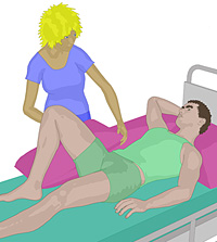 - Die Ausbildung eines Spitzfußes kann mit einer Bettkiste, mit einem Schaumstoffblock oder mit einer Fußstütze vermieden werden.