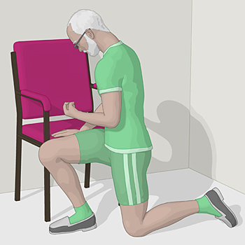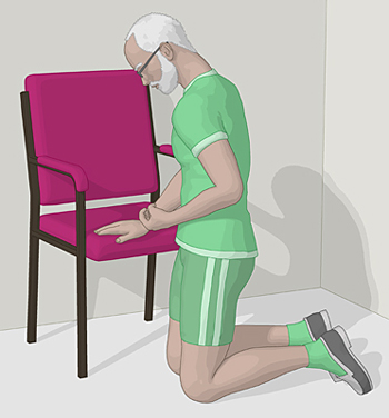 Standard "Hemiplegie: Aufstehen vom Boden mittels eines Stuhls"