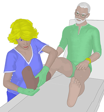 Knie ist der einzige Teil der Applikation, bei der der Strumpf ein