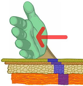 flache Hand mit der Handkante auf die Haut auf. Sie schiebt nun die