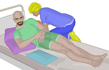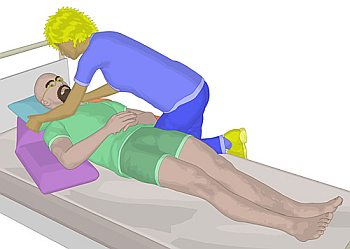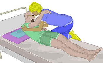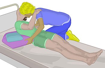 betroffenen Seite zu wenden und gleichzeitig vom Bett abzuheben.