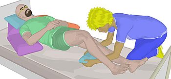 werden. Ggf. korrigiert sie die Lagerung des Beines. Ggf. kann sie das