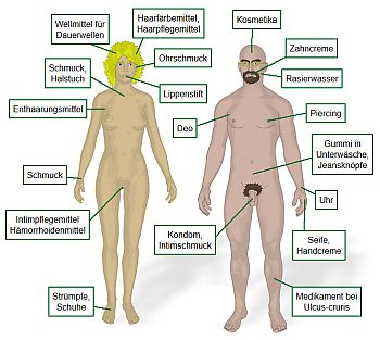 einem Allergen. Der häufigste Allergieauslöser ist Nickel, etwa in