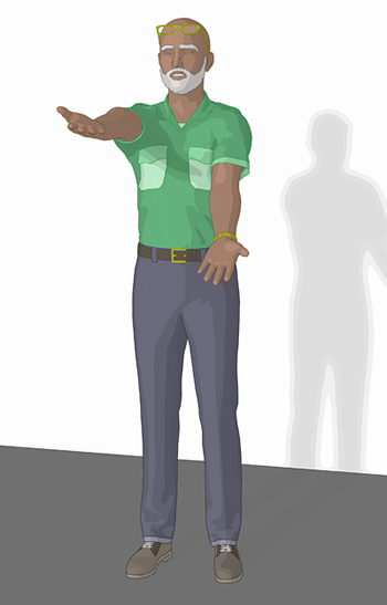 Mitarbeiter die Rolle des Betroffenen und demonstriert die typischen