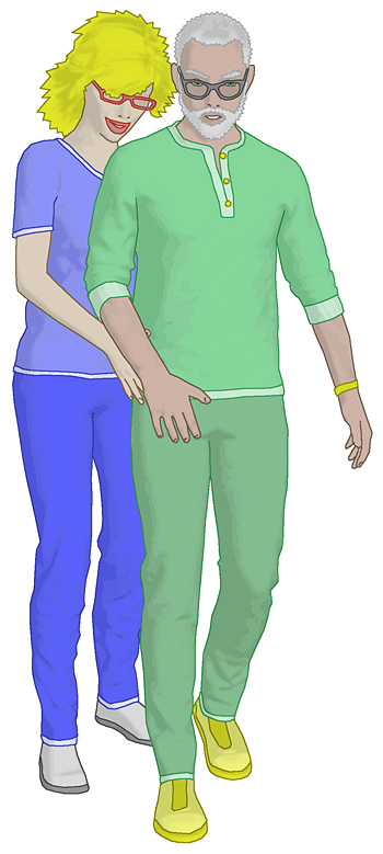 Die Pflegekraft sollte während des Gehens