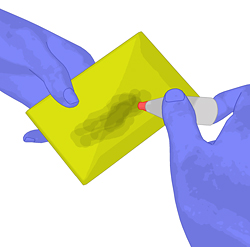 die Wundauflage trocken aufgelegt. Die geglättete Seite der Wundauflage