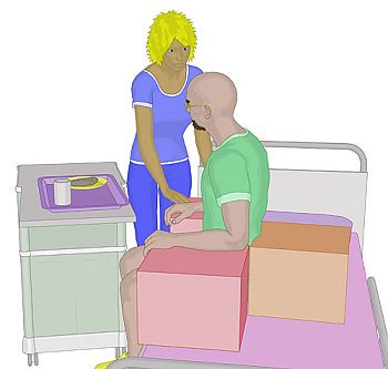 Lagerungswürfel (Bild oben). Ein Würfel wird im Rücken des Bewohners platziert.