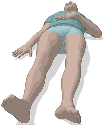 Es kommt zu einer typischen Fehlstellung des betroffenen Beins: Das Bein ist verkürzt und nach außen gedreht (siehe Bild).
