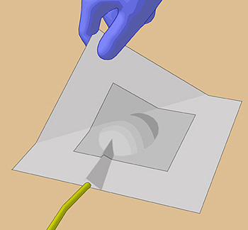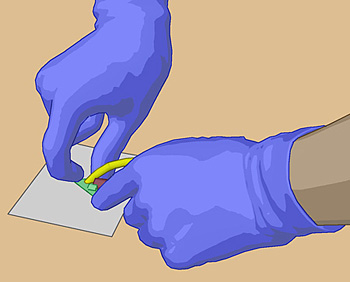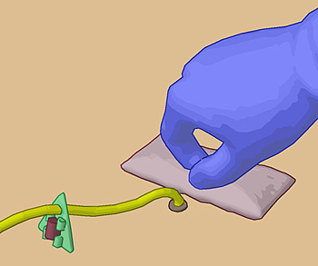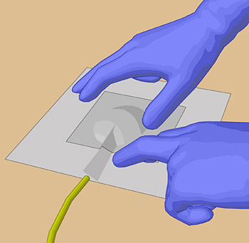 sterilen Pinzette). Durch die Schlitzkompresse