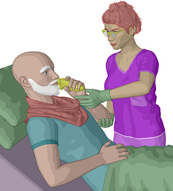 Die Rasur des Halsbereichs gelingt leichter, wenn der Pflegebedürftige seinen Kopf durchgestreckt.