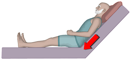 Bett oder im Rollstuhl sitzt. Die Schwerkraft zieht dann den Körper
