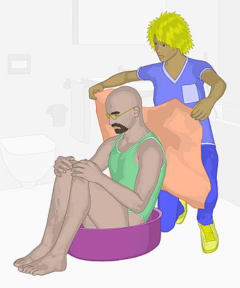 Der Bewohner wird entkleidet. Der Intimbereich
