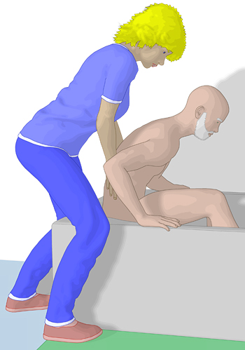 Pflegekraft befinden sich nun in einer nahezu stehenden Position. Beide