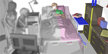 Mitbewohners so aufgestellt, dass der Hemiplegiepatient ihm die mehr