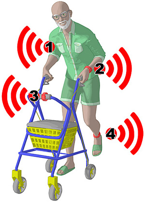 Der Bewohner trägt das System am Armgelenk (2). Die