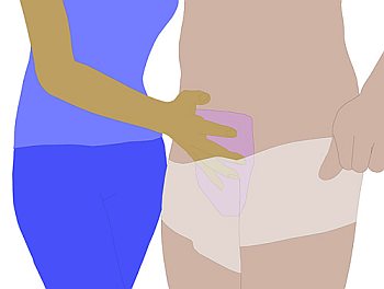 einem eng anliegenden Schlüpfer oder einer speziellen Netzhose stellen
