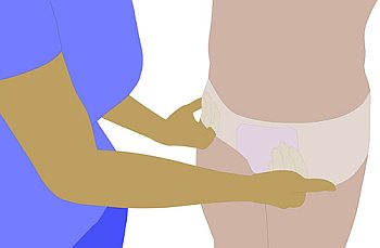 austretende Urin wird von einer Einlage oder Vorlage aufgefangen. Mit