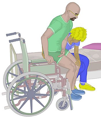 Standard: "Hemiplegie: Transfer vom Bett in den Rollstuhl über die weniger betroffene Seite mit seitlicher Unterstützung"