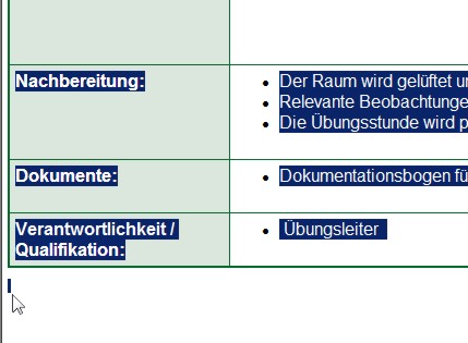freien Bereich etwas unterhalb des Tabellenendes. Lassen Sie die linke