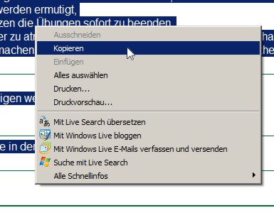 linken Maustaste den Punkt "Kopieren". Das Fenster schließt sich
