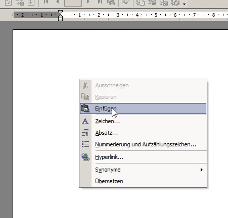 Sie mit der linken Maustaste den Punkt "Einfügen". |