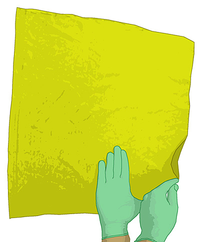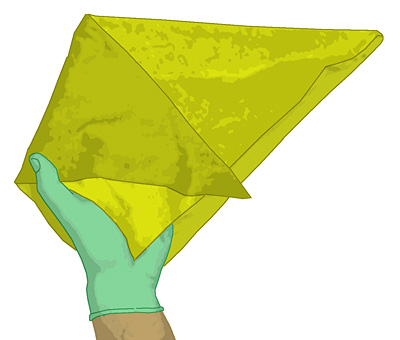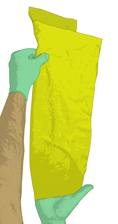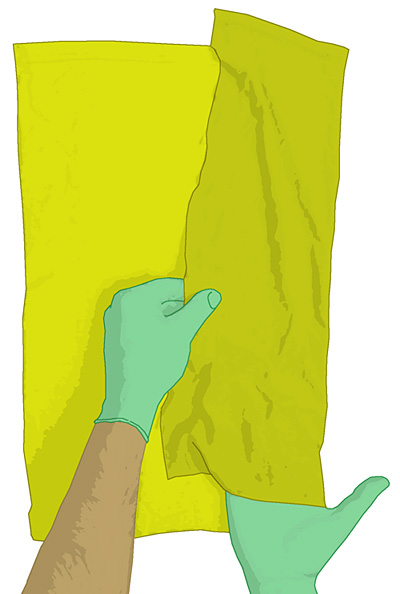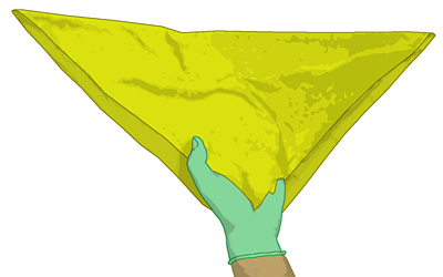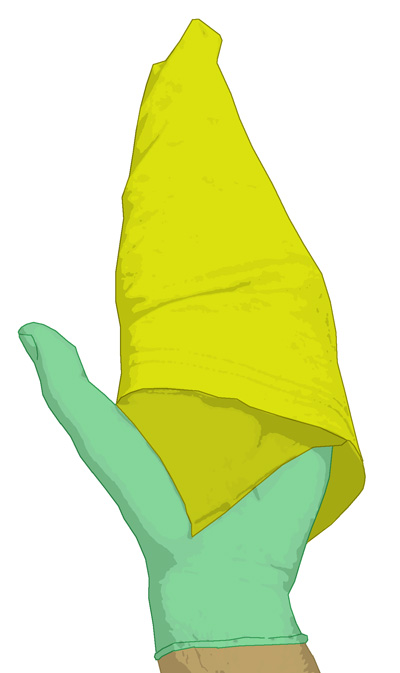 - Die Pflegekraft führt danach die rechte Ecke in die Mitte in Richtung Handteller.