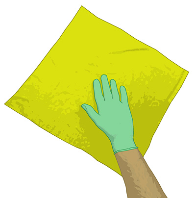 Arbeitsfläche abgelegt. Die Pflegekraft teilt das Handtuch gedanklich