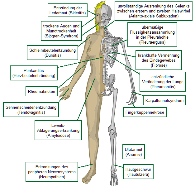 Gehäuft aufretendende extraartikuläre Manifestationen bei rheumatoider Arthritis