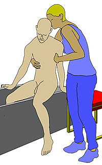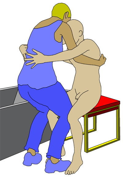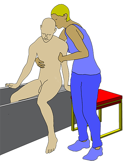 am Becken des Bewohners, dass dieser unkontrolliert in die Wanne