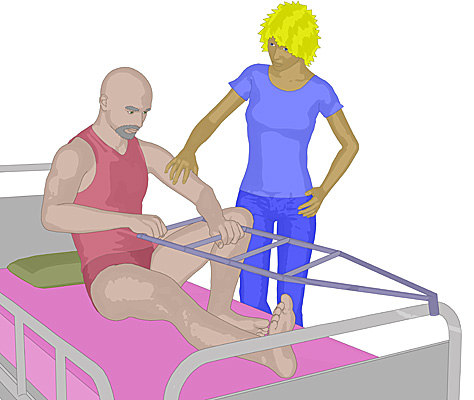 danach seine Beine schrittweise an die Bettkante bewegen. Falls nötig