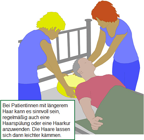 - Die Haarwäsche wird nur dann im Bett vorgenommen, wenn