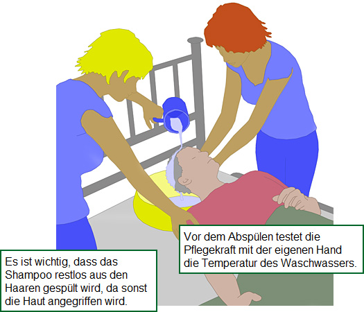 Die Haarwäsche ist Aufgabe der Bezugspflegekraft,