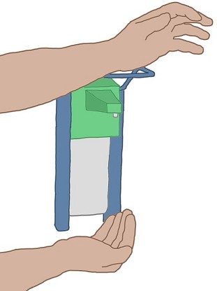Spender. Alle Bereiche der Hand müssen gleichmäßig mit dem Präparat
