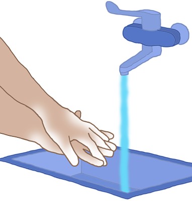 möglich) mit dem Ellenbogen ab. Wenn der Waschplatz mit einem