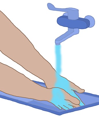 - Die Pflegekraft stellt das Wasser an. Dieses