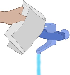 Wasserhahn ausgestattet ist, wird dieser mit einem Einmalhandtuch
