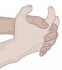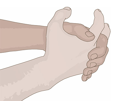 Hand ein. Der Daumen der mehr betroffenen Hand sollte oberhalb des