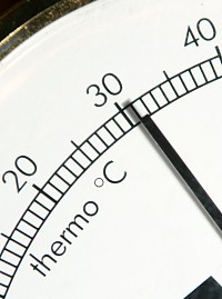 Thermometer. Die Temperaturen werden bei einer Hitzewelle morgens,