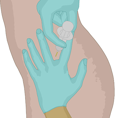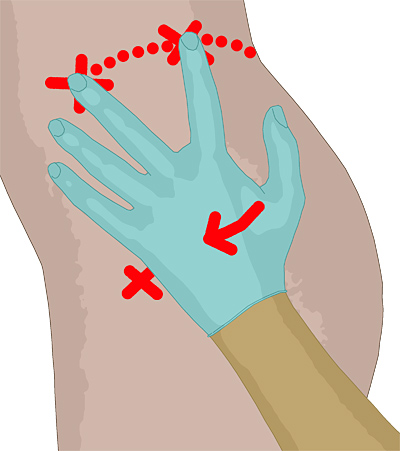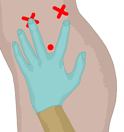 - Die Injektionsstelle wird wie beschrieben neu ertastet.