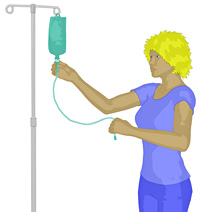 - Die Infusionsflasche bzw. der Beutel werden nun aufgehängt.
