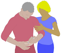 durchführen. Er wird dabei von der Pflegekraft angeleitet. Auch bei