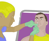 bei Infektionen im Nasenbereich: sterile Wattestäbchen)