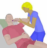 einer Hand festhalten. Die Pflegekraft führt dann die Hand des