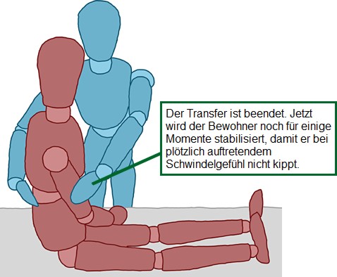 - Falls möglich stützt sich der Bewohner mit dem