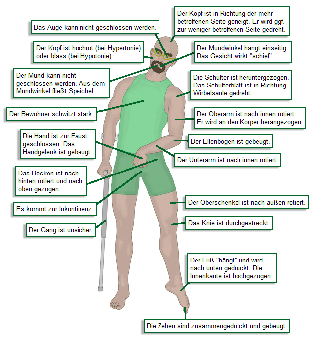 - typische "Schlaganfall-Haltung" (sichtbare
