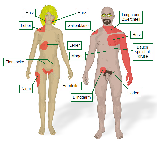 Organen als auch von der Haut gemeinsam verwendet werden. Schmerzen von