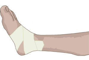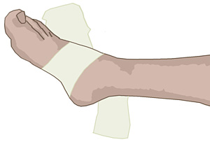 Als alternative Maßnahme zur Vermeidung eines Spitzfußes bietet sich das Wickeln des Fußes an.