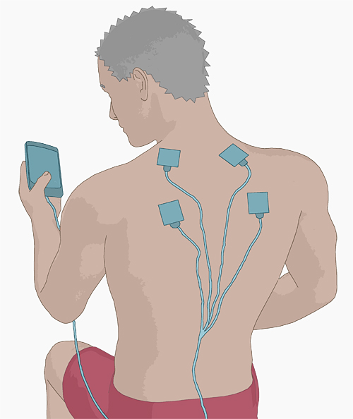 Hautelektroden im Bereich von schmerzenden Körperstellen auf, die