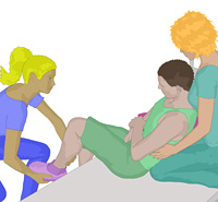 - Die zweite Pflegekraft hebt nun ihr Gesäß