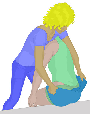 Klienten nach vorne und stützt diesen mit ihrem Oberkörper ab.